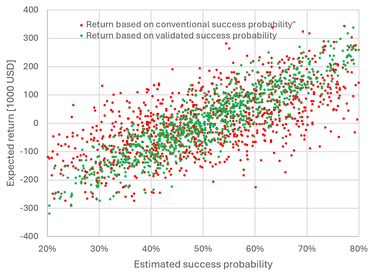 The application of validated probabilities can considerably improve decision-making in the funding stage by mitigating the risk of poor choices.